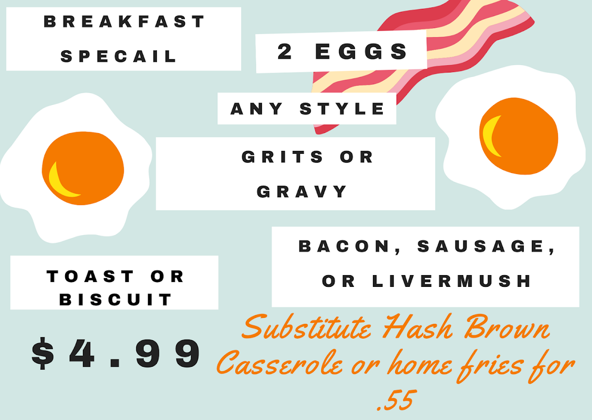 Welcome to Clover Station, a beloved dining spot nestled in the heart of Clover, SC. Their menu is a celebration of comfort food that transports you back to homestyle cooking. Start your day with perfectly cooked eggs—whether you prefer one or two, they get it just right. The omelet selection is a standout, featuring classic choices like cheese, ham and cheese, as well as bacon or sausage. And for those who crave a hearty bite, their bacon is a must-try.